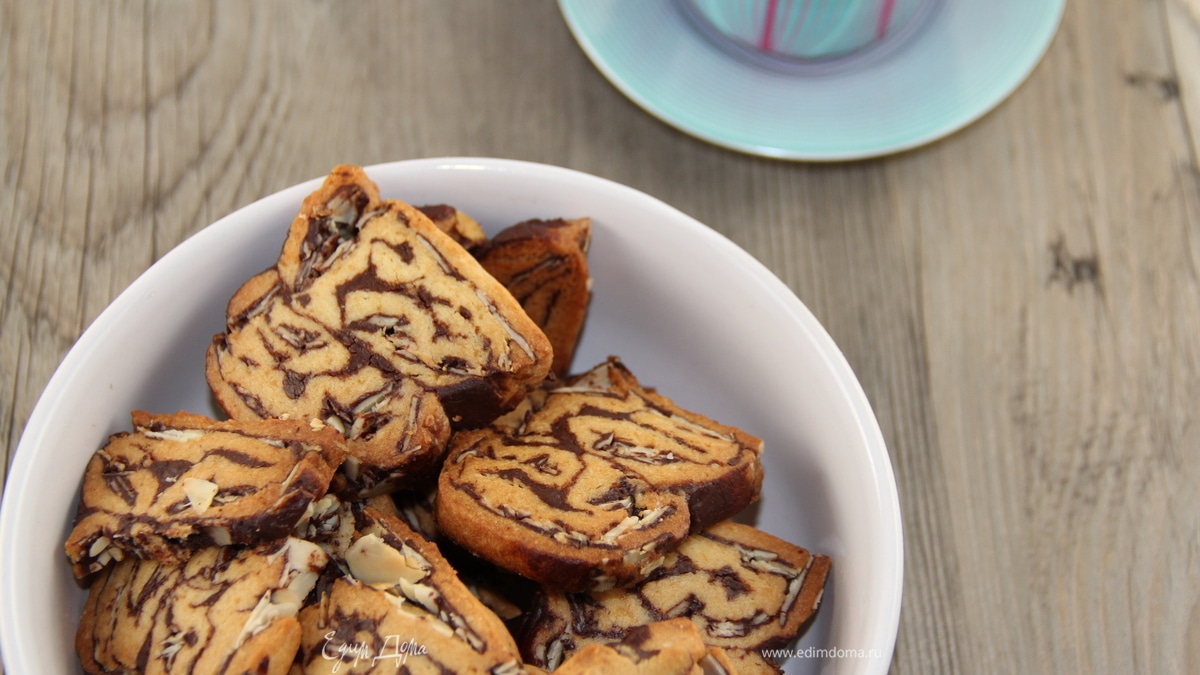 Сегодня хотела бы предложить вот такие вот симпатичные и вкусные печенья)) с зебровым рисунком)) на вкус они очень приятные - хрустящие, с ярким вкусом шоколада. Шоколад можно брать по вкусу - черный или молочный. Готовятся они несложно и я бы сказала, что и недолго: пока тесто отдыхает в холодильнике можно заниматься своими делами, а формуются и выпекаются они быстро) Хотела бы отметить несколько моментов по поводу рецепта: 1. Тесто нужно хорошо охладить и раскатать его желательно максимально быстро - так оно меньше будет таять. 2. Растопленный шоколад нужно остудить. Если он будет теплым, то может расплавить тесто и оно порвется. 3. По тем же причинам не стоит тесто раскатывать слишком тонко. Раскатываем его в прямоугольник, длину можно уменьшить, а вот ширину лучше сохранить, чтобы было удобнее складывать рисунок. За рецепт благодарю Катерину с одного из кулинарных сайтов))) Буду рада, если и Вы поробуете))