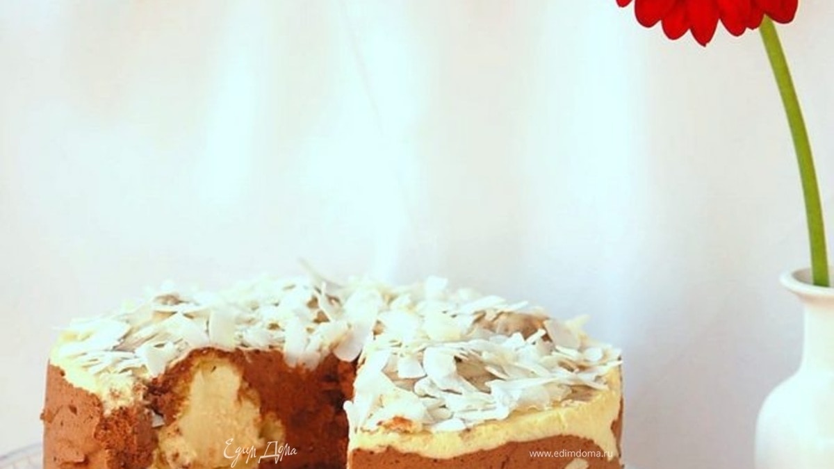 Поверх выкладываем оставшийся шоколадный крем + остаток ванильного крема, легонько перемешайте верх торта, пусть крема смешаются. Уберите торт в холодильник на ночь. Декорируйте по желанию и настроению. - Шаг 23