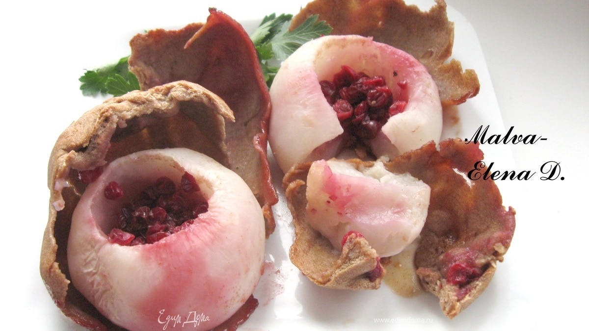 Когда хотят сказать «очень просто» - говорят проще пареной репы. Ну а я приготовила не пареную, а запеченную. Тоже очень просто. Рецепт пришел из финской кухни. Бруснику в блюде можно заменить клюквой. Вместо теста можно воспользоваться фольгой.