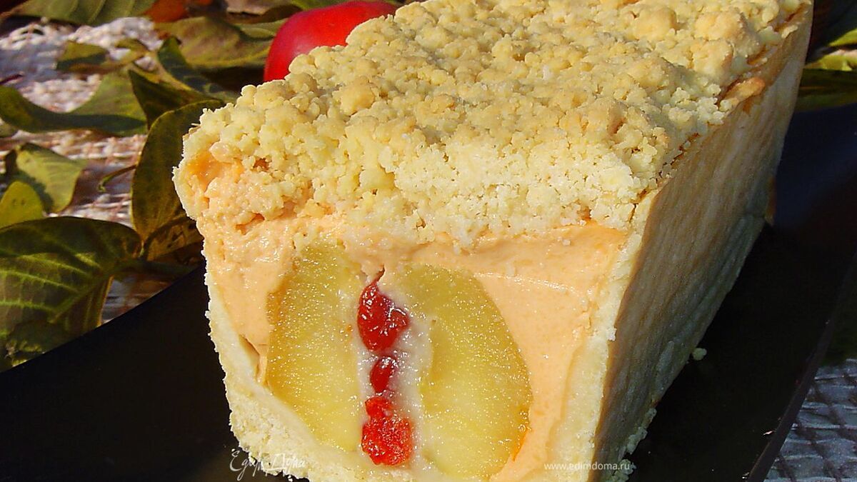 Пирог с яблоками, фаршированными марципаном и вялеными вишнями