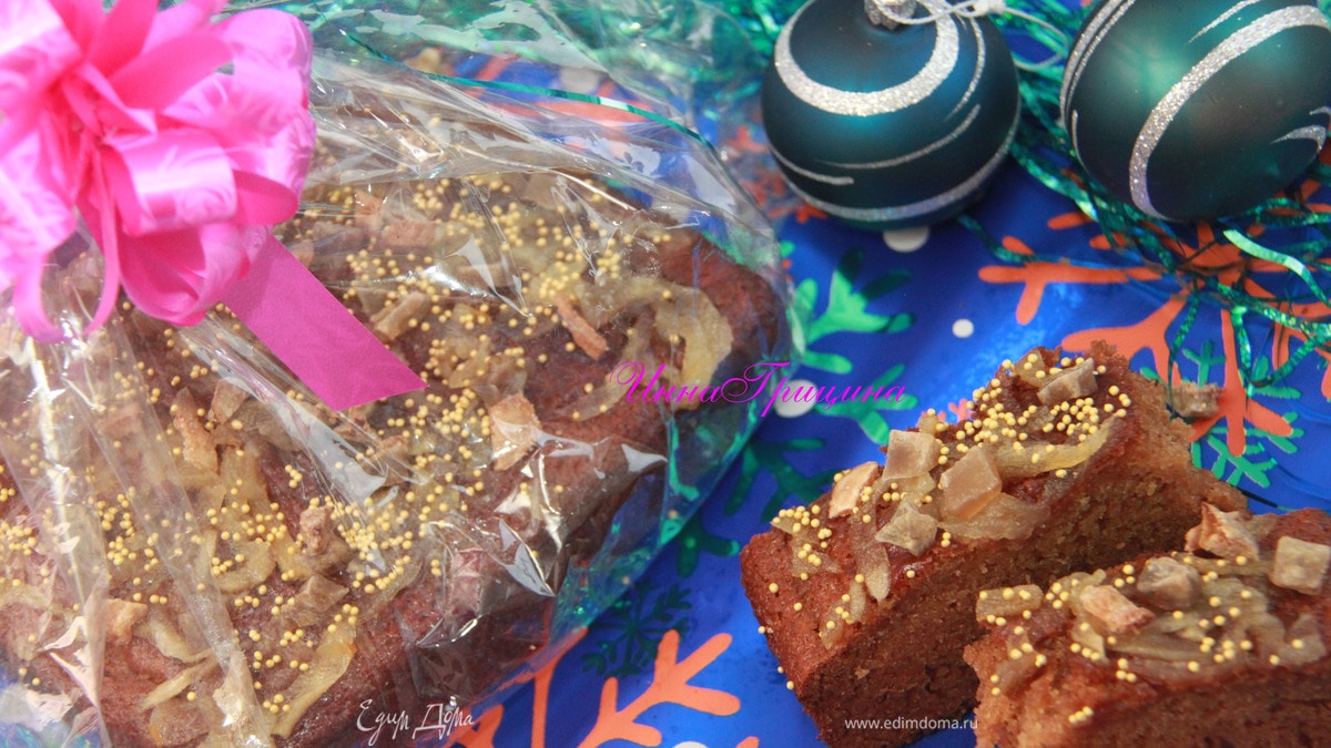 Прянику дать остыть, покрыть сиропом вместе с кусочками груши, посыпать цукатами (у меня из дыни и баклажанов. Рецепты см. здесь: ссылка на рецепт и здесь: ссылка на рецепт - Шаг 8