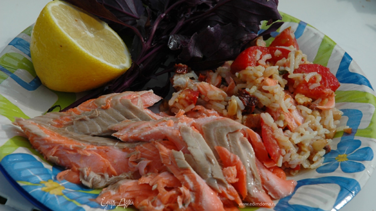 Семга на гриле, фаршированная рисом