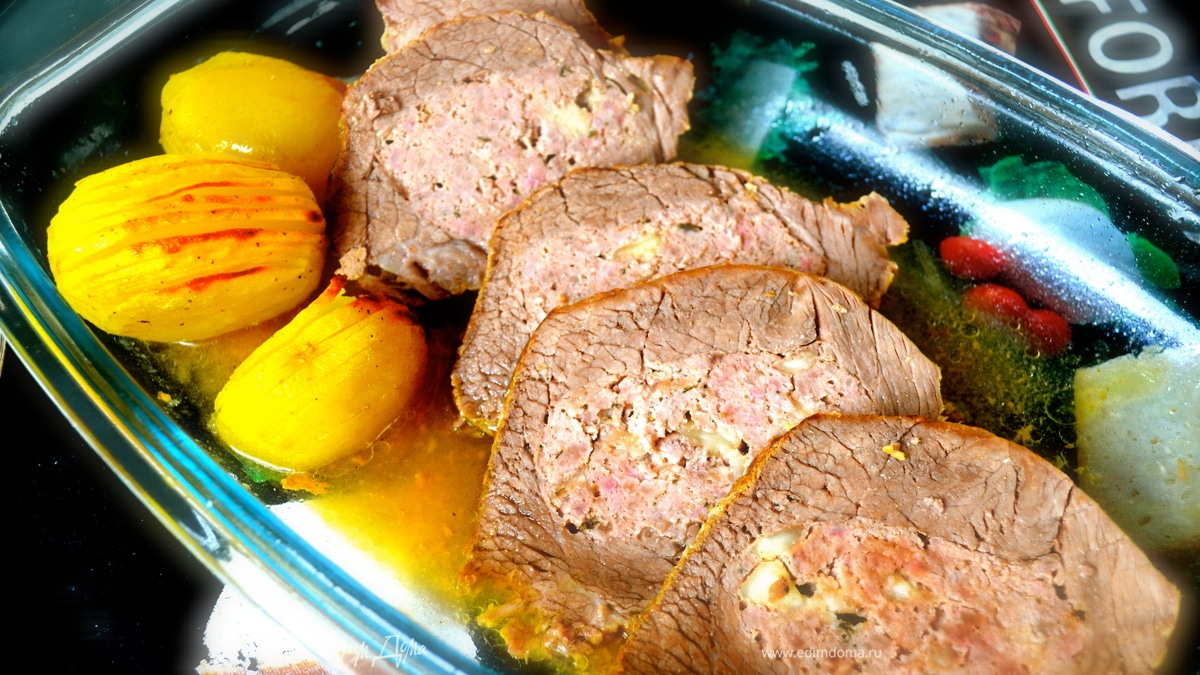 Ириш, прости, что не очень удачное у меня фото получилось, на самом деле мясо - обалденно вкусное было, просто о б а л д е н н о вкусное!!! Я была просто счастлива, так как кусочек мне очень дорогой достался, спинная часть, я жутко боялась его испортить, но все получилось на ура, такая классная пикантность в начинке засчет пармезана, наверное, очень и очень вкусно, единственное, я поняла, что для такого блюда бульон стоит свой собственный использовать, так как я в последнее время подсела на очень достойный заменитель в форме порошка био, он очень хороший, но при уваривании оказался безумно соленым, на мясе это никак не отразилось, только на соусе, так что по совету супруга добавила к нему сливок и все удалось! Спасибо тебе большущее!!!!💗😋😋😋