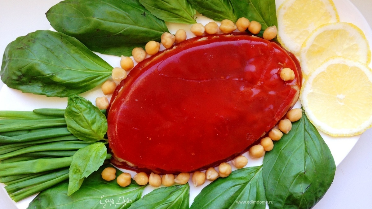 Перед подачей перевернуть холодец на блюдо, украсить дольками лимона и зеленью. - Шаг 7
