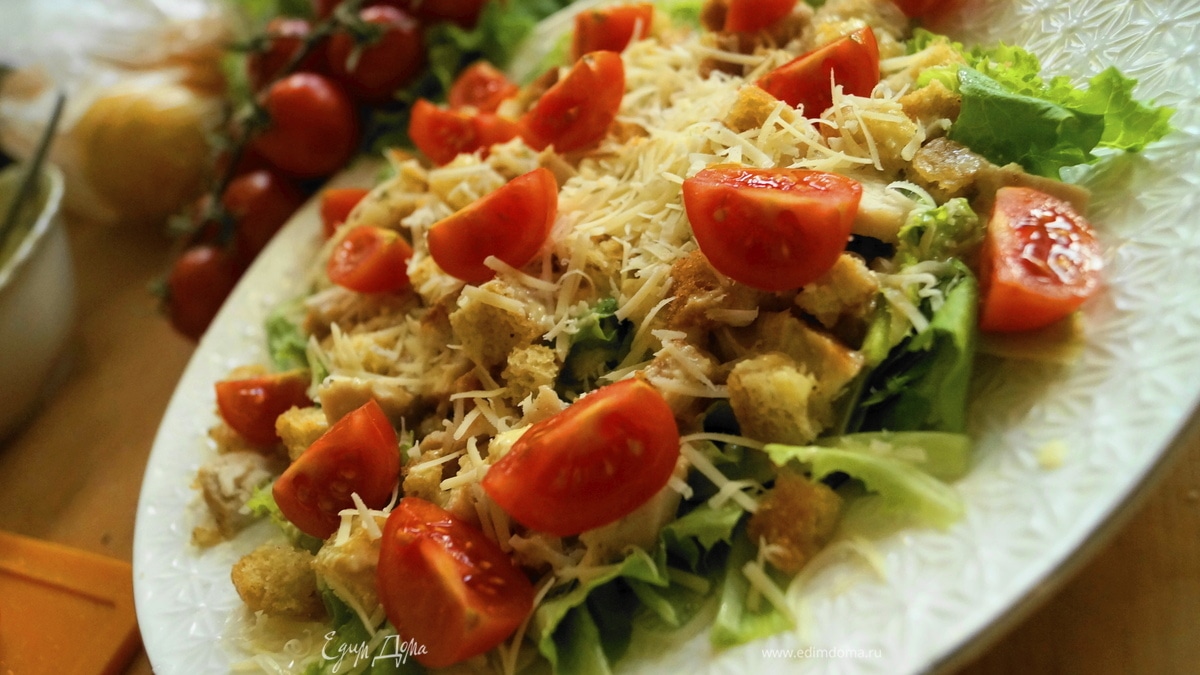 Классический салат «Цезарь» с одноименным соусом