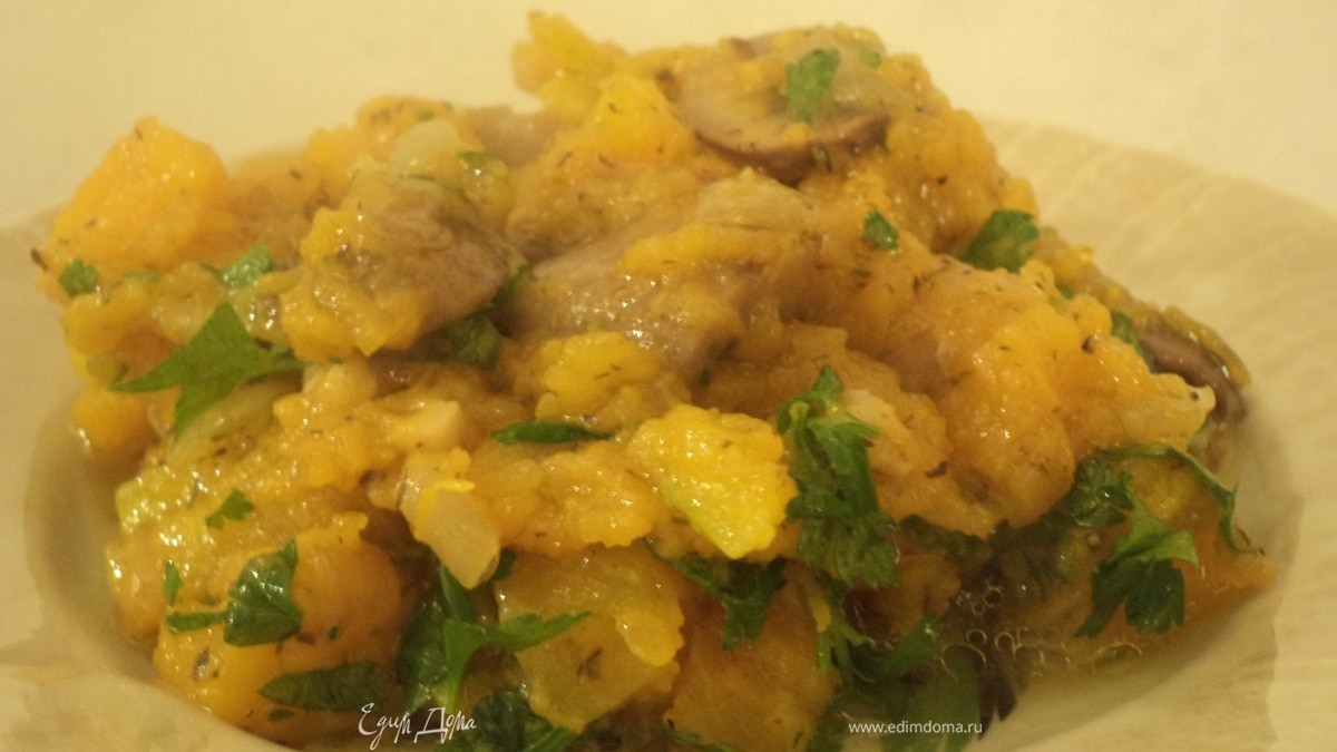Тушеная тыква с грибами