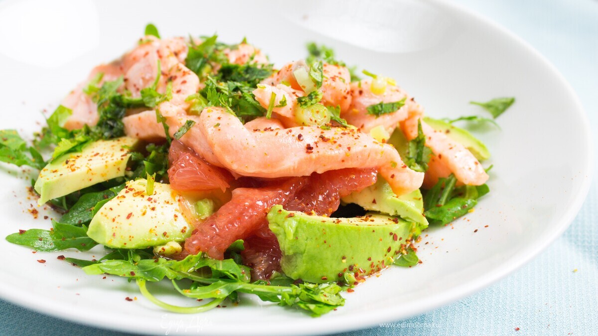 Севиче из лосося с авокадо и розовым грейпфрутом