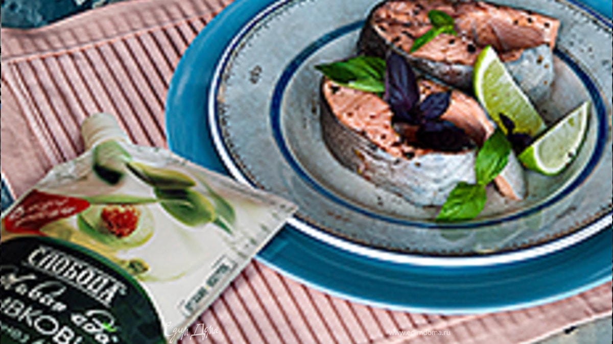 Холодный припущенный лосось под майонезом с травами
