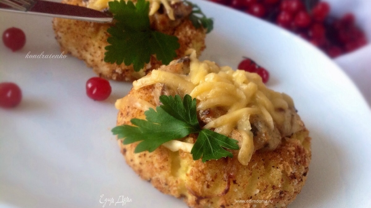Картофельные гнезда с курицей и грибами