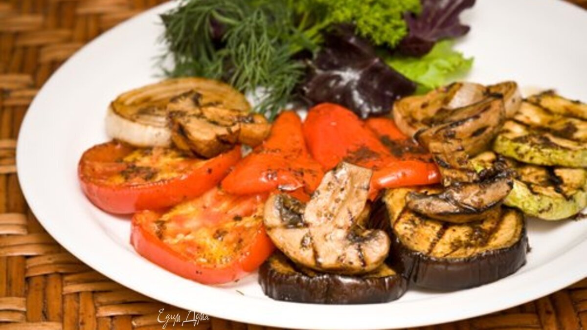 - Шаг 1Полить овощи, оставить при комнатной температуре на 20 мин. Обжарить на сковороде гриль, полив маринадом!