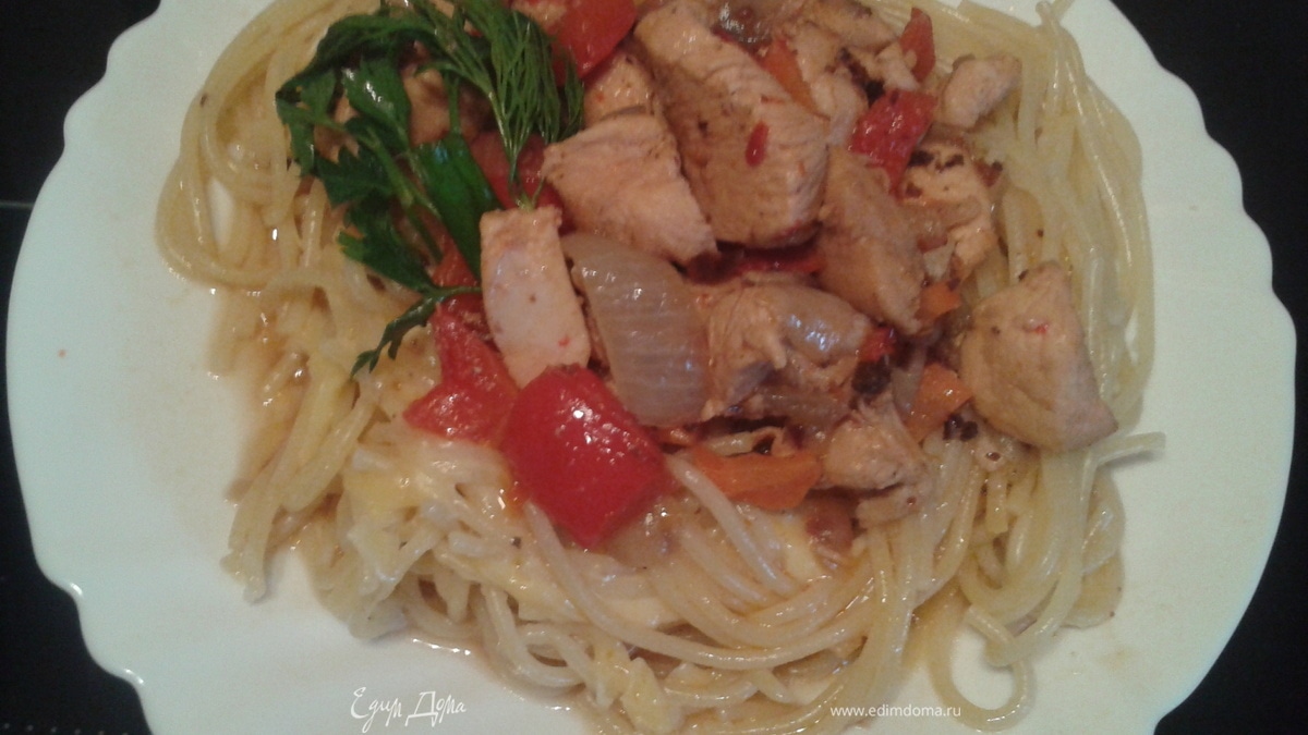 паста с куриным филе и сладким перцем