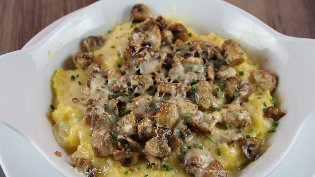 Запеченная полента с грибами