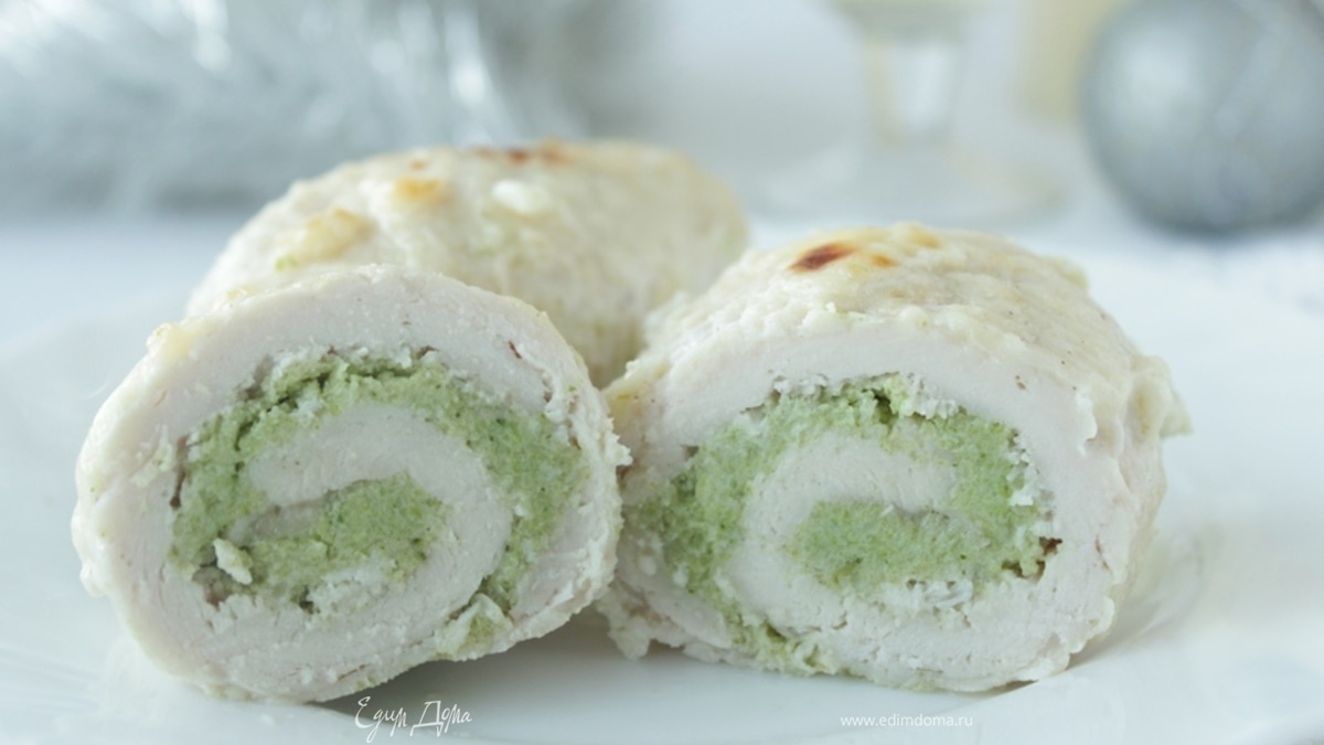 Вдоль филе сделать разрез, разделить грудки на две части. Хорошо отбить. Курицу посолить, поперчить, выложить начинку из брокколи и рикотты.