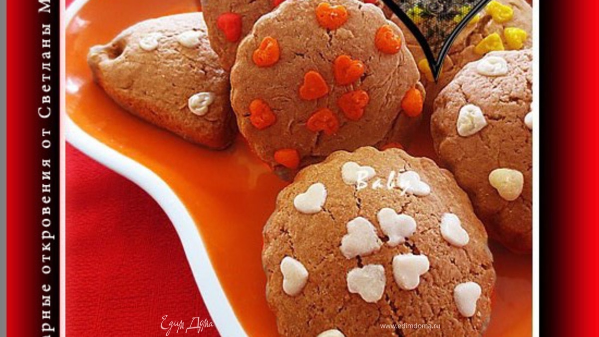 Печенье можно украсить на Ваш вкус. Это может быть глазурь и так далее. У меня сахарные сердечки. По желанию можно добавить корицу, гвоздику, мускатный орех. Я не добавляла. И наконец та, для которой готовилось это печенье, наша Маргаритка.