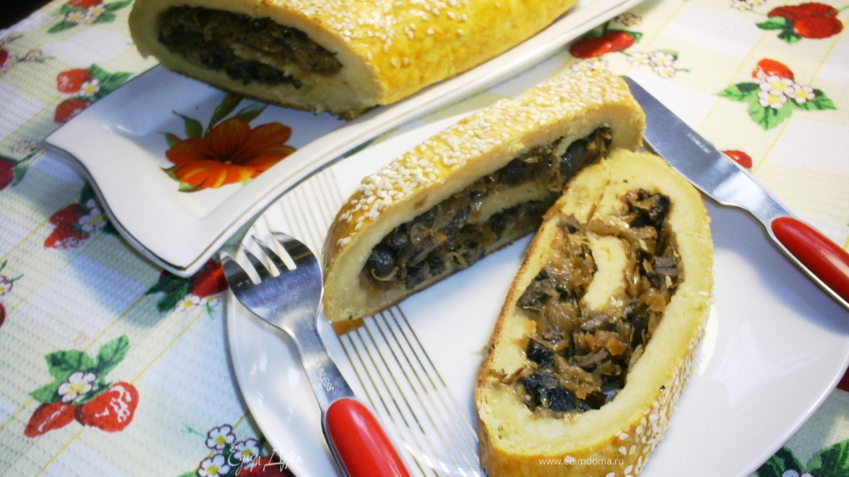 Картофельный рулет с шампиньонами и квашеной капустой