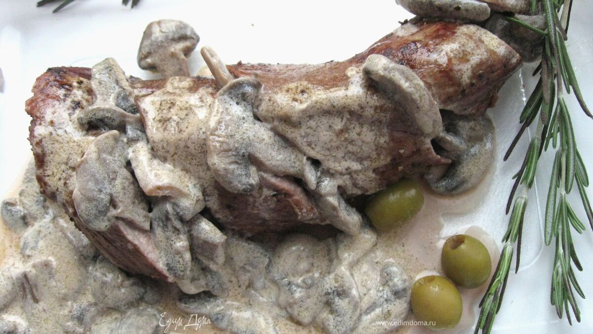 Сочная телячья вырезка по-французски с шампиньонами