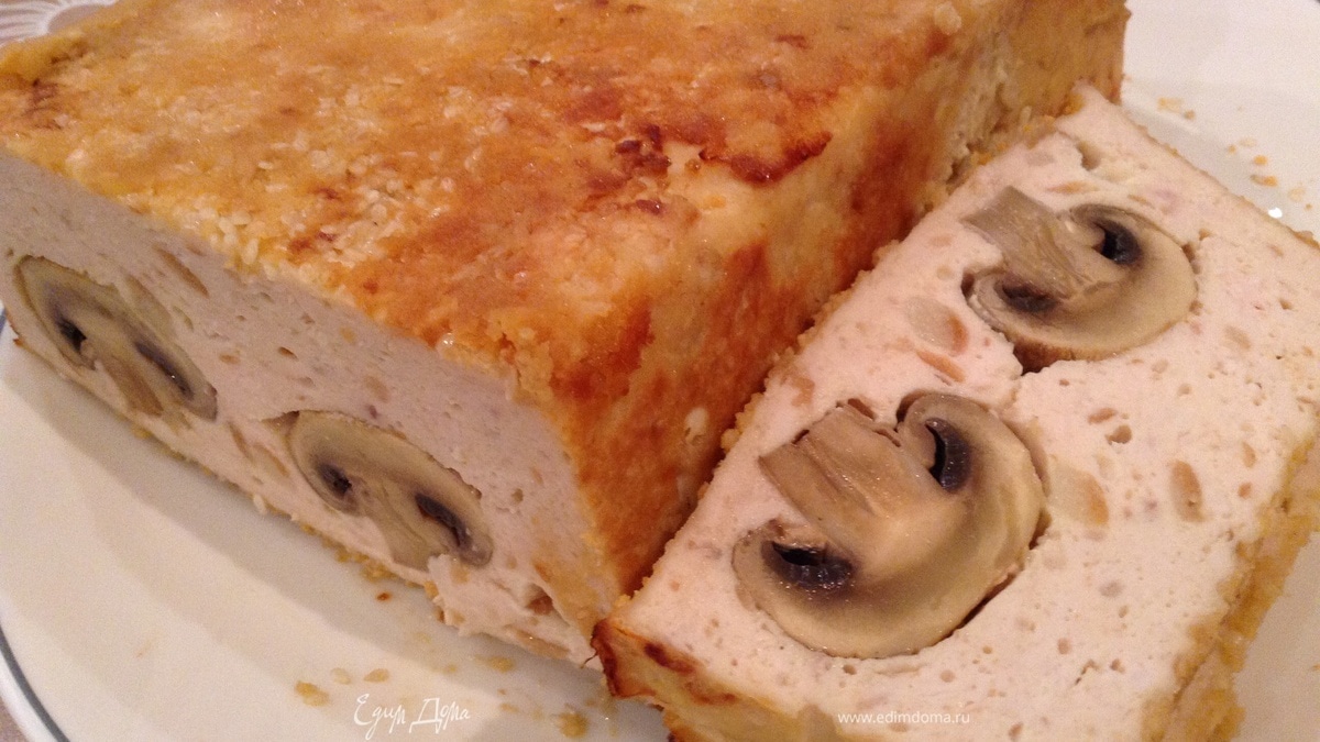 В форму выложить 1/2 фарша + грибы + 1/2 фарша - Шаг 6