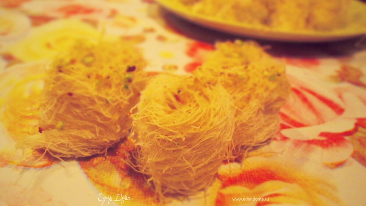 Тесто катаифи, или как еще называют волосы ангела. Представляет собой вытяжное тесто фило, разрезанное на тончайшие нити - волоски. - Шаг 6
