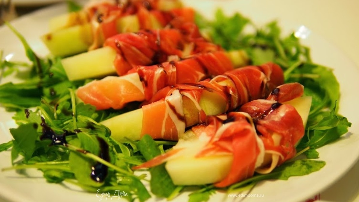 Легкая закуска из дыни и пармской ветчины