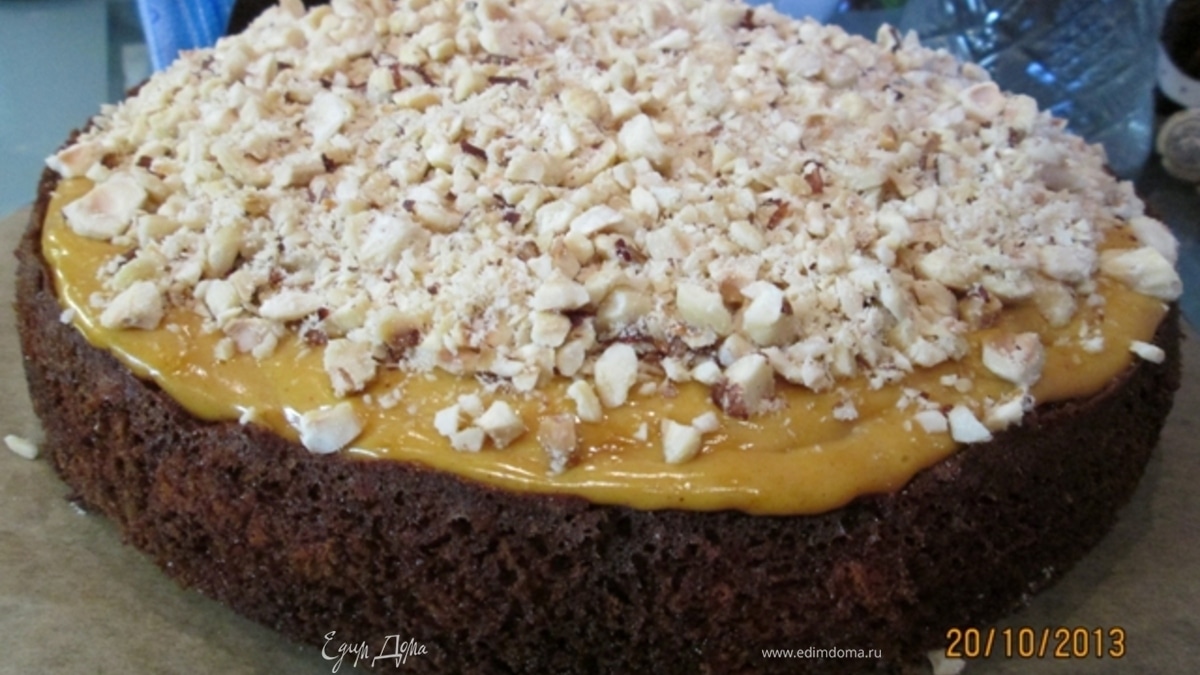 Этот рецепт – из журнала «Хлеб-соль». Орехи можно взять любые. В оригинальном рецепте – миндаль или грецкие. Но у меня был фундук. Пирог получается влажноватый, ноздрястый, с выраженным ореховым вкусом. А сверху – сливочный крем с кислинкой! Праздник вкуса!