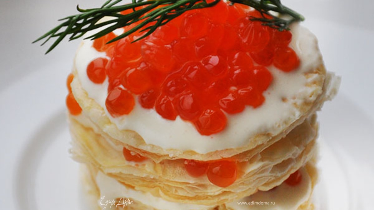 Слоеные башенки с красной икрой