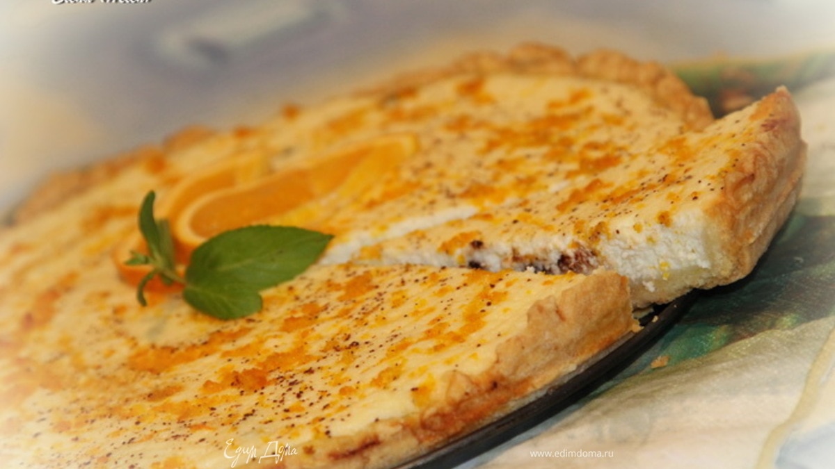 Апельсиново-коричный творожный пирог с горьким шоколадом