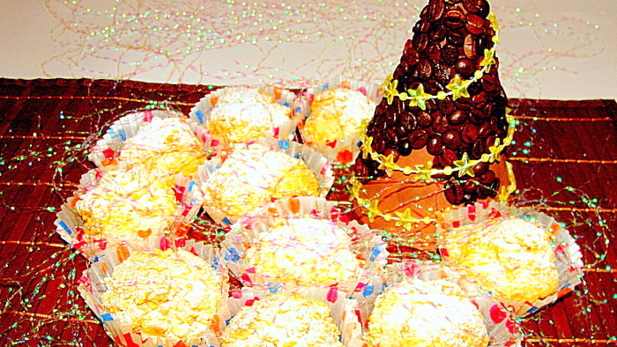 Пироженки несколько расползутся, но не слипнутся, за счет панировки. Если вас это удовлетворит, то продержать в духовке их нужно 15-18 минут. Я же хотела добиться формы подобной цветку( символически конечно). Для этого, через 10 минут, вытащила их из духовки, разделила и при помощи лопатки, т.к. пирожные довольно горячие, придала им форму и уложила в бумажные формочки. Это нужно делать довольно быстро, чтобы пирожные не остыли и не застыли.