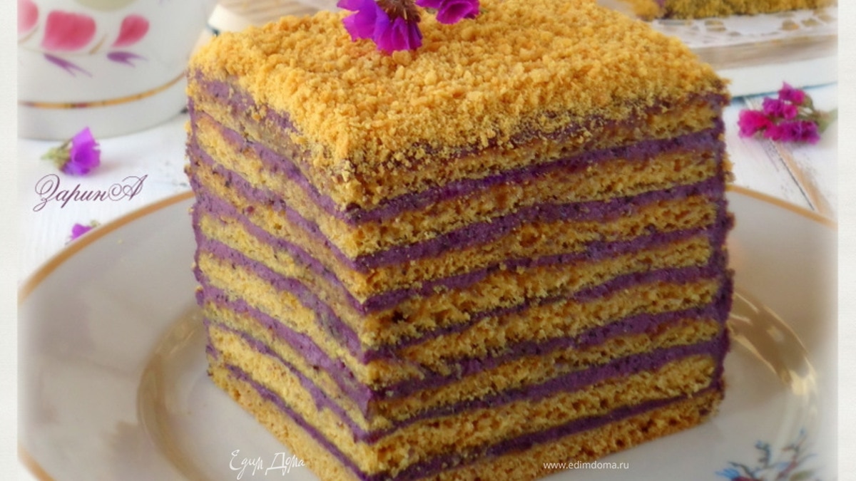 Спасибо Вам большое за рецепт! Очень вкусный торт, я, признаться, столького от него не ожидала 😊😊😊 Всем очень понравился! И внешне очень привлекательный, все эти фиолетовые полосочки, ммм))) Я, быть может, немного передержала коржи в духовке, они были довольно твердые, поэтому когда собрала торт, оставила его пропитываться на столе на ночь, а потом убрала в холодильник. Был нежнейшим! 🌷🌷🌷🌷