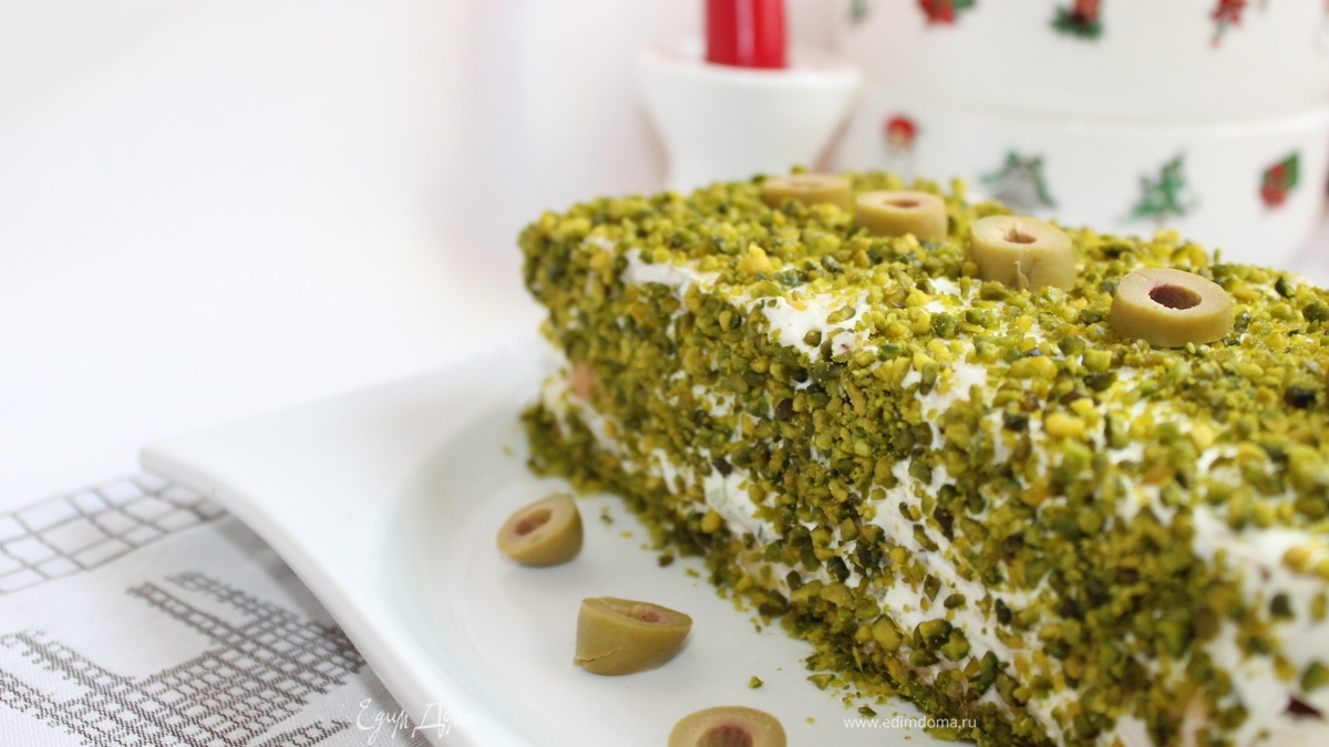 Украсим нарезанными оливками. Перед подачей режем на 6 частей. Угощайтесь! Приятного аппетита! - Шаг 9