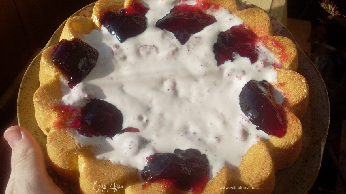 Получился он очень нежным - ведь сухой составляющей мало, но и на омлет не похож. Лимонной цедры я положила меньше, чем по рецепту, а надо было полную порцию, так бы пропал привкус кукурузного крахмала, который немного присутсвовал (в ингридиентах пишу количество цедры по рецепту).