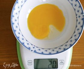 Я делала печенье из половины нормы указанных в ингредиентах продуктов. В любом случае, Вам прийдется "вооружиться" электронными весами. Взвешиваем все ингредиенты, в том числе желтки и яйца! ))) так как я брала половину от всех продуктов, то один целый желток получился как раз на 20 г. А вот 12 г целого яйца...... я просто разбила одно яйцо в чашечку, размешала вилкой и затем отмерила 12-13 г... )))