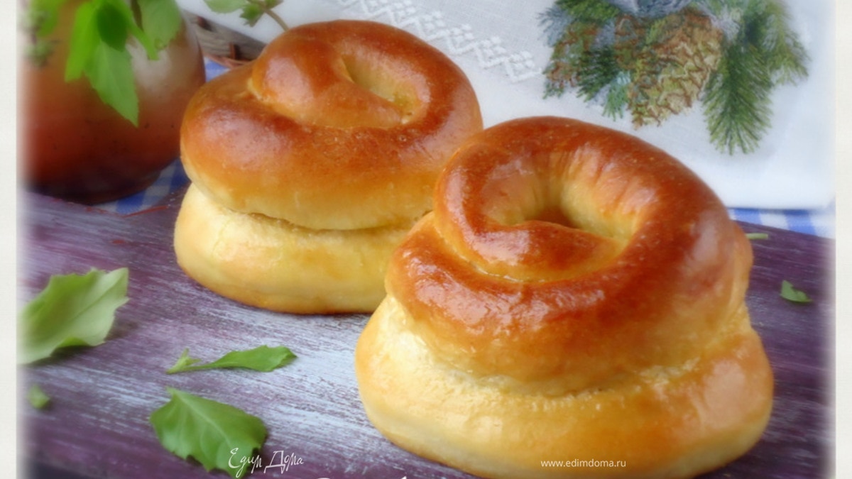 За пять минут до готовности булочки вынуть из духовки, смазать желтком, смешанным с одной столовой ложкой воды и опять поставить в духовку на 4-5 минут. Приятного!!
