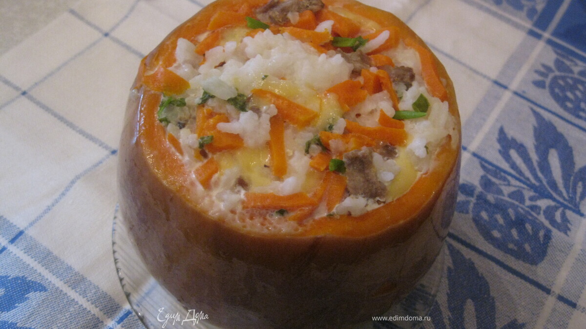 Тыквенный горшочек с рисом и говядиной