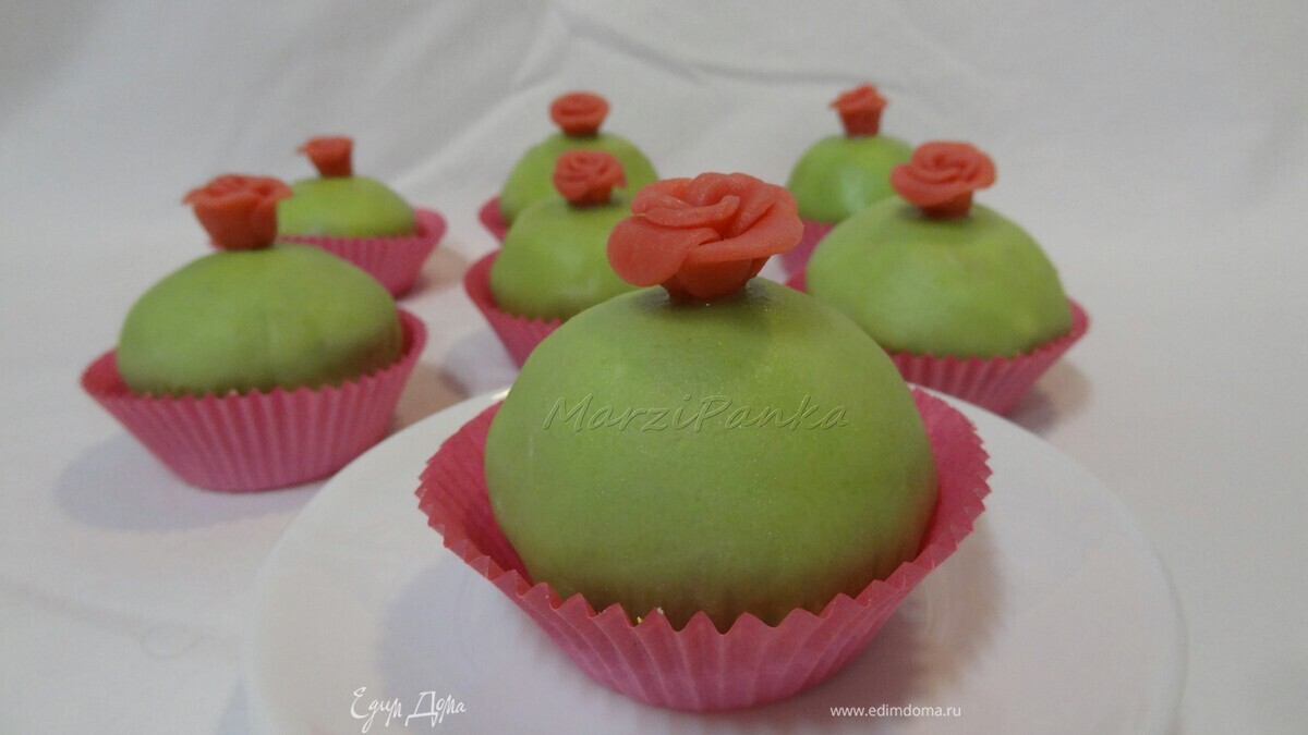 У меня не было зеленого марципана, поэтому я взяла белый и добавила в него краситель зеленого цвета. - Шаг 24