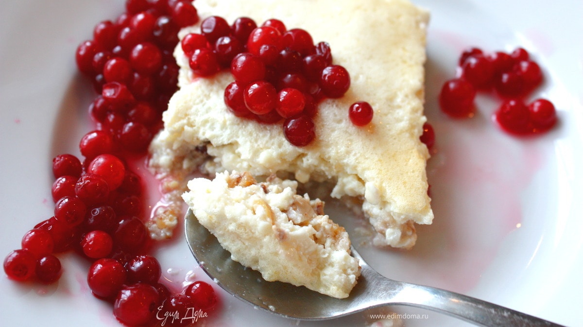 Воздушная творожная запеканка с орешками
