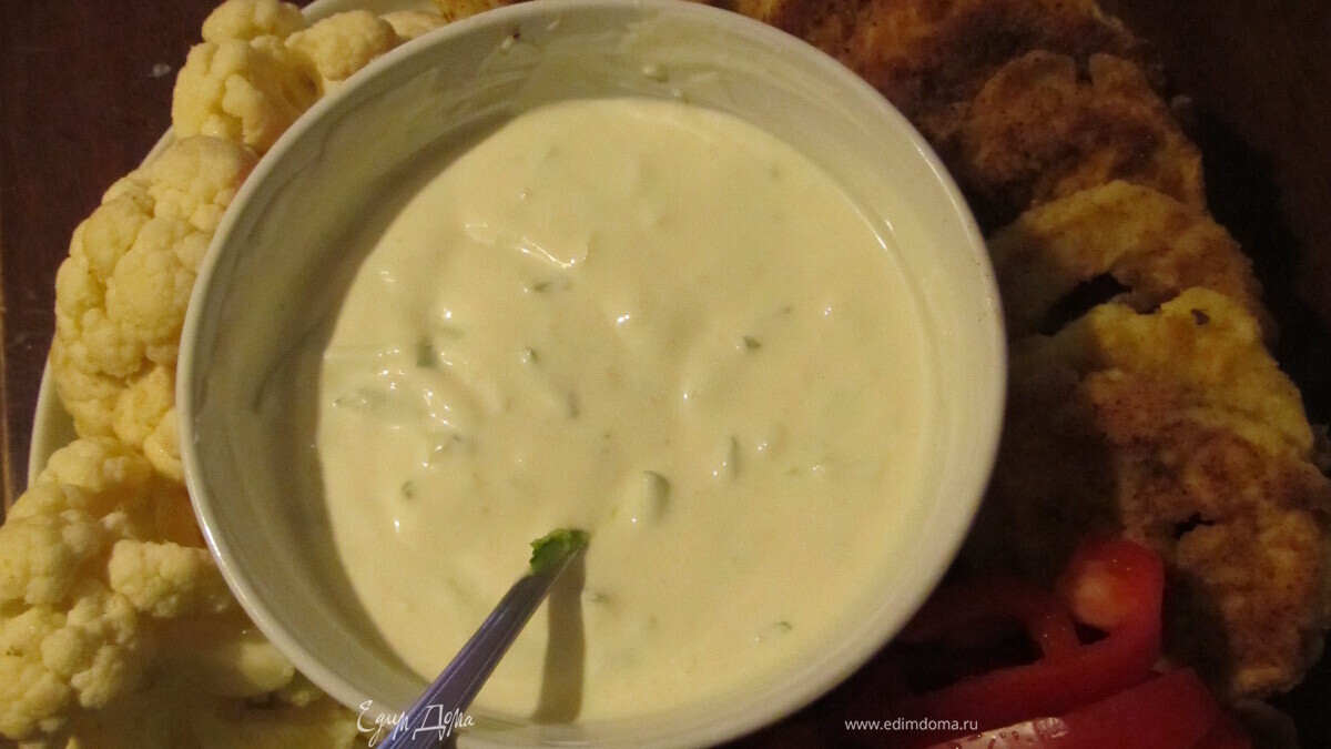 Чеснок трём на мелкой тёрке или выдавливаем, добавляем в массу. Всё перемешиваем и соус готов! Этот соус также можно делать с маринованным или солёным огурцом, можно без чеснока, можно добавить зелени по вкусу. Вот сколько вариантов!