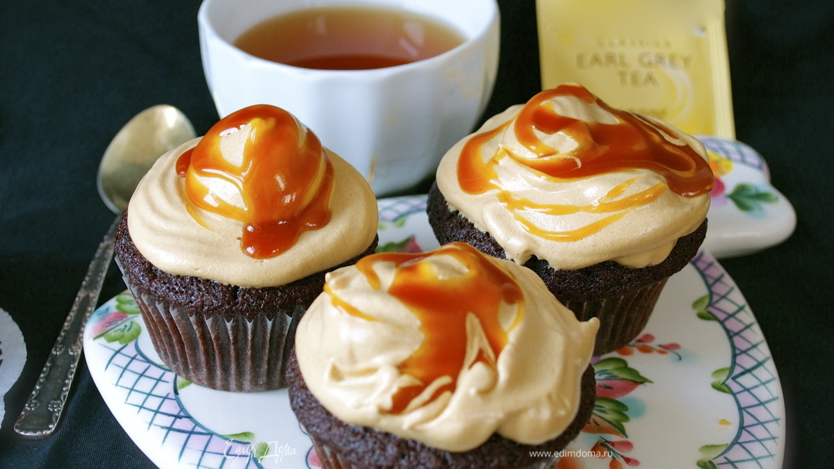 Шоколадные капкейки со вкусом чая эрл грей и соленой карамелью
