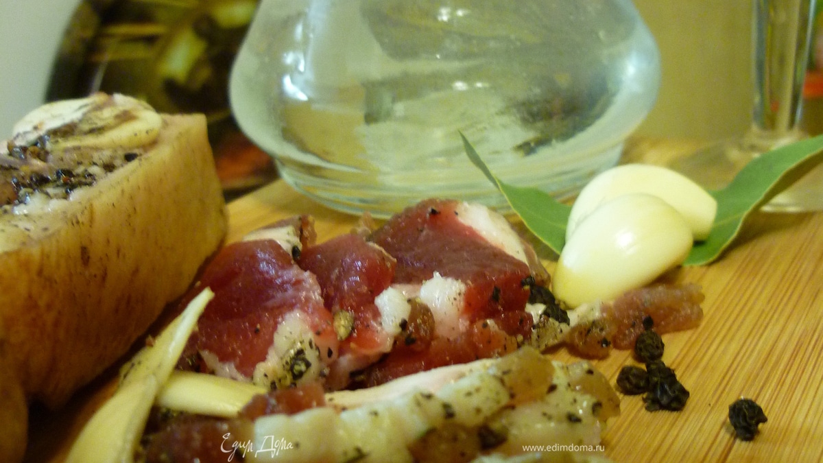 Первый шаг - это шаг в сторону деревенского рынка. Именно на деревенском (или колхозном) рынке есть некие шансы купить настоящее деревенское сало, выращенное, а не наколотое гормонами роста. Мясную прослоечку выбираем потолще, сало должно быть белым, мягким, нежным. А шкурка - обязательно толстая. Это один из показателей натуральности. А если она еще и отделяется хорошо, то вы - везунчик!!! - Шаг 1