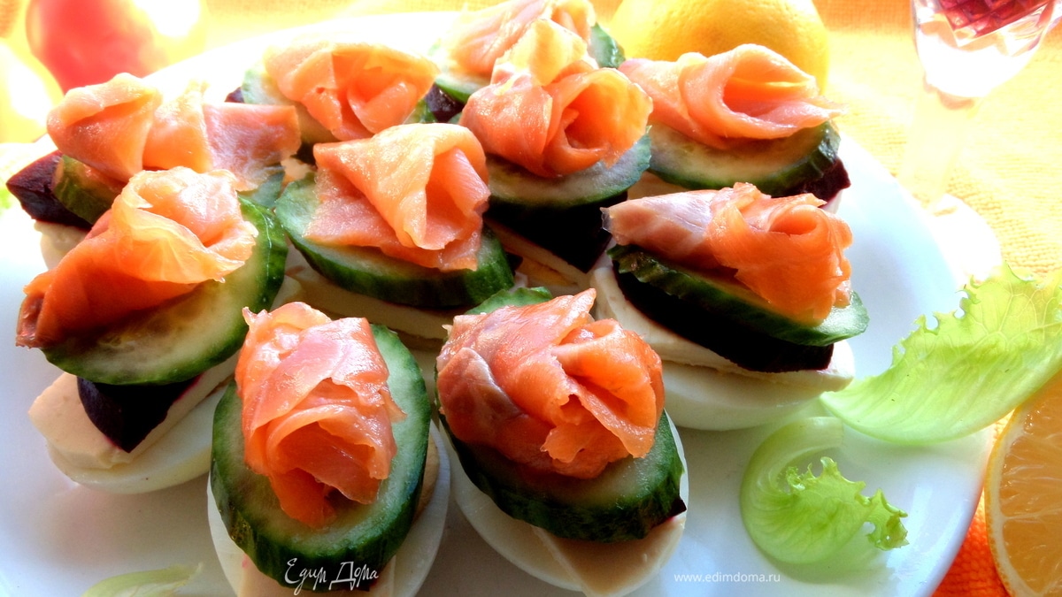 Рыбное канапе на маринованных яйцах