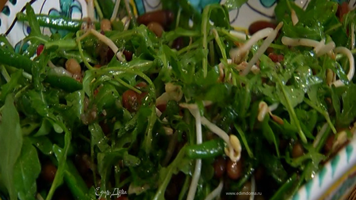 Салат из фасоли с руколой и маковой заправкой