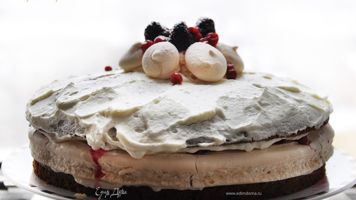 Брусничный торт с безе