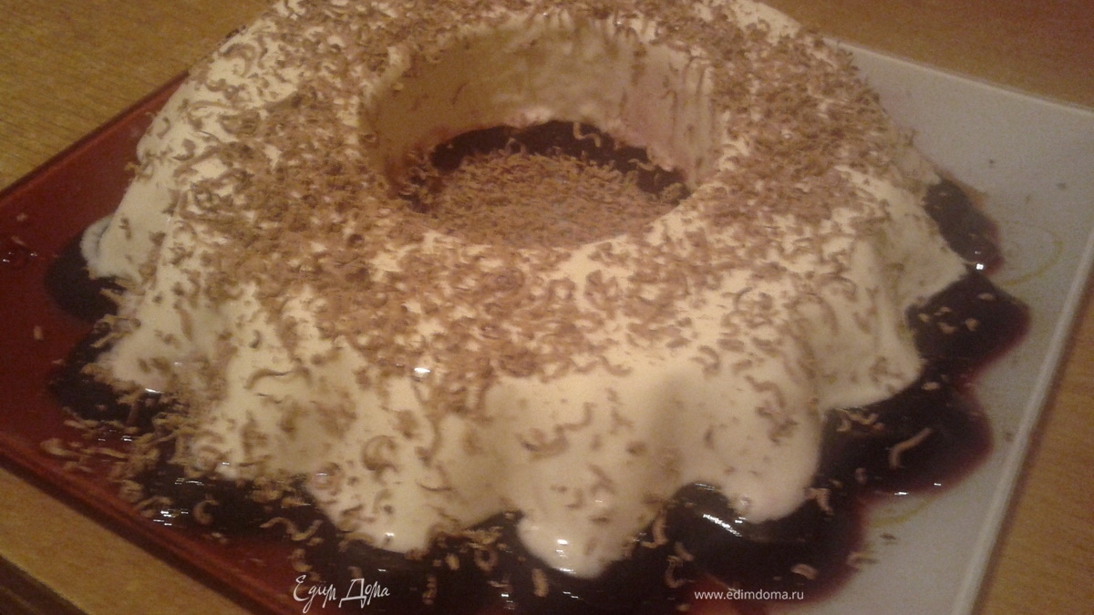 - Шаг 3Разбавляем сироп по вкусу, в 1 ст. л. горячей воды разводим 20 грамм желатина и оставляем на 5 мин.Затем перемешиваем и выливаем в форму с молочной массой и ставим в холодильник на 1 час. Как только все застыло достаем и на 10 секунд опускаем форму в горячую воду и переворачиваем на блюдо, можно украсить по желанию.