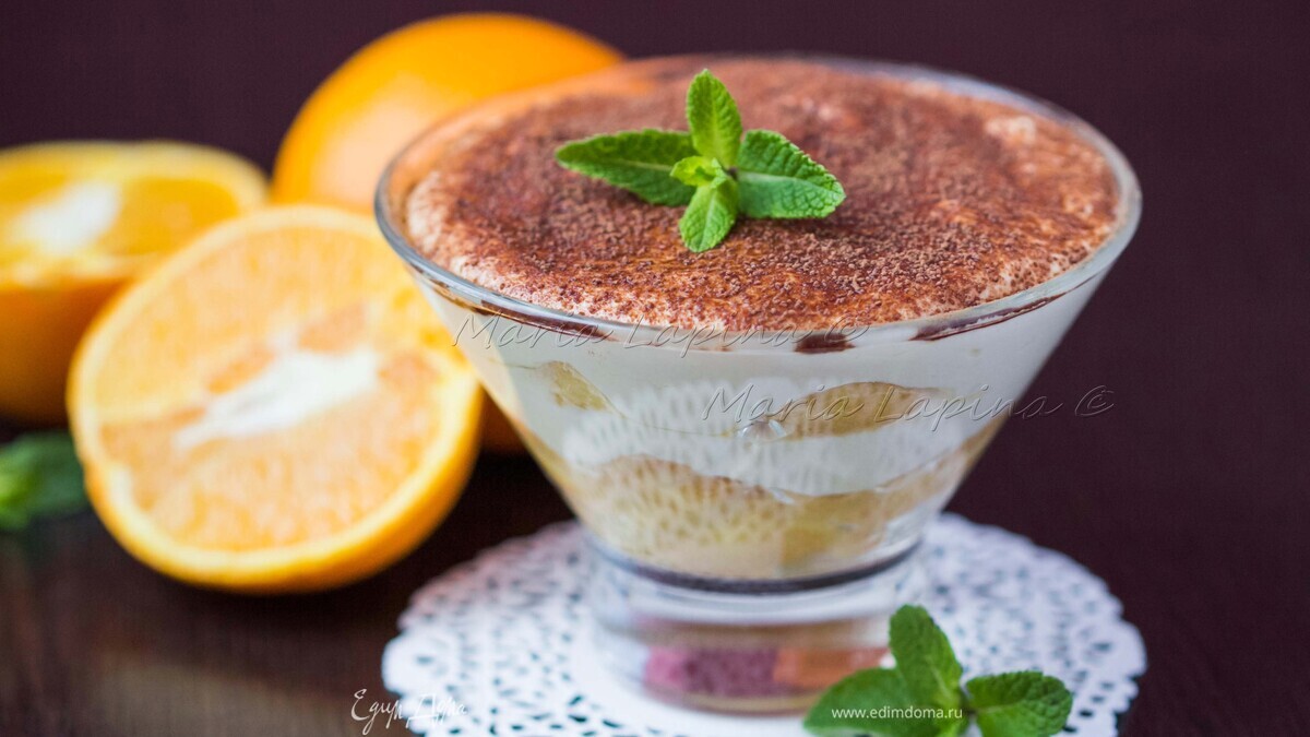Апельсиновый тирамису с мятным сиропом