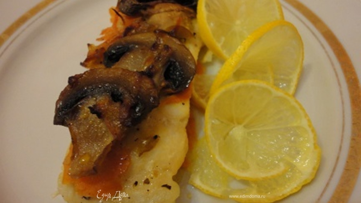 Сверху положить рыбное филе и грибы с оставшимися луком и морковью , влить 2-3 ложки рыбного бульона или просто горячей воды и запекать в разогретой духовке (200 градусов) 20 минут. - Шаг 3
