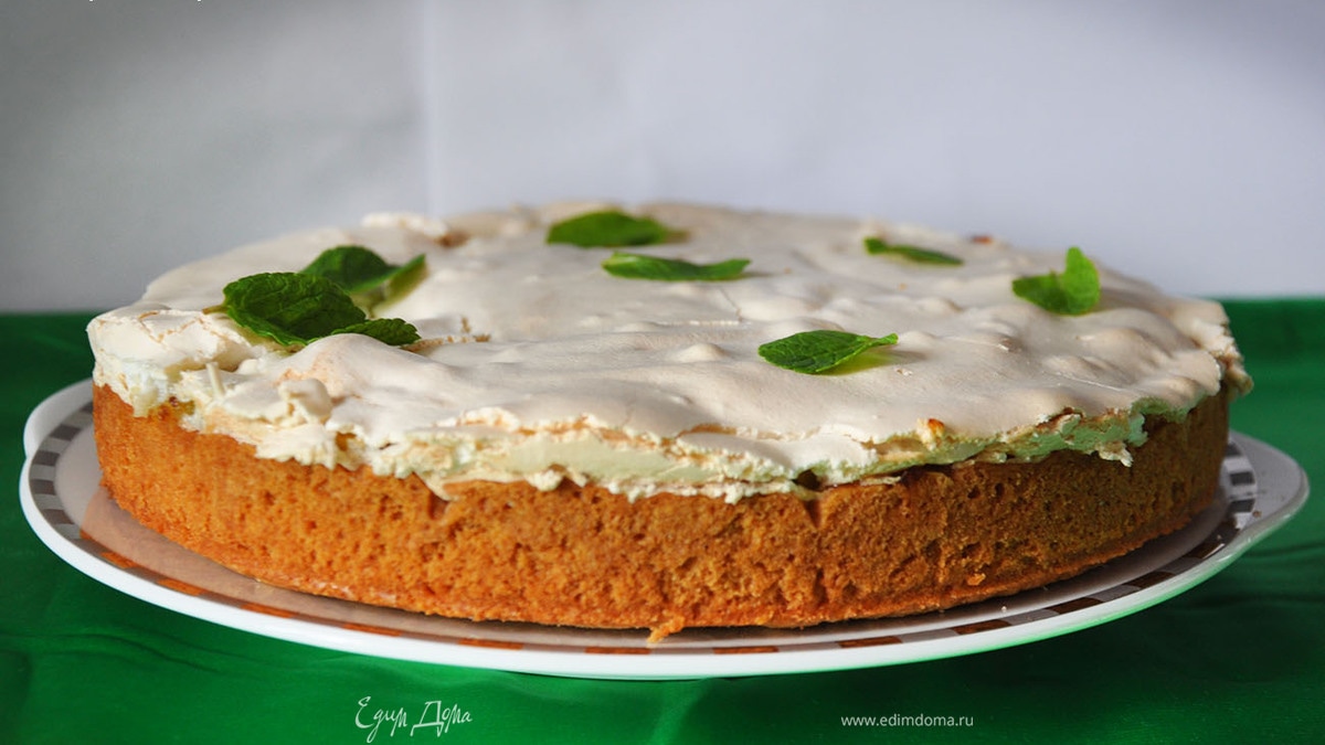 Песочное тесто, нежный сметанный крем, фрукты, пышная меренга с хрустящей корочкой.