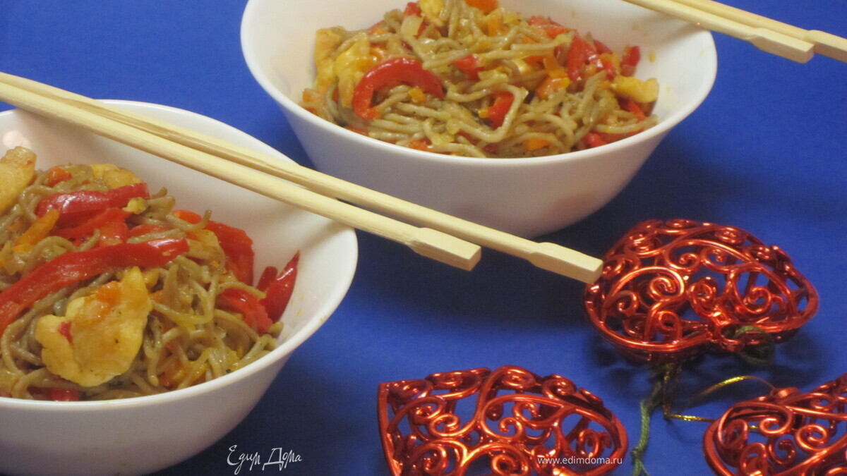 Соба с курицей и овощами