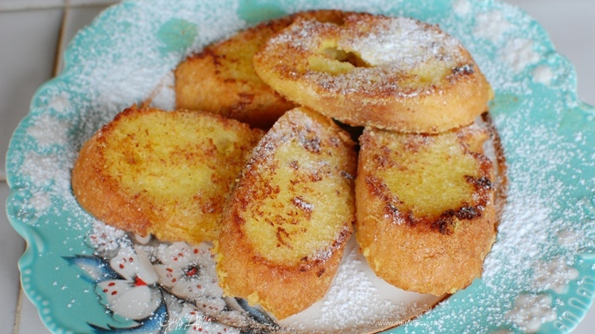 Обжаренные тосты посыпать сахарной пудрой.