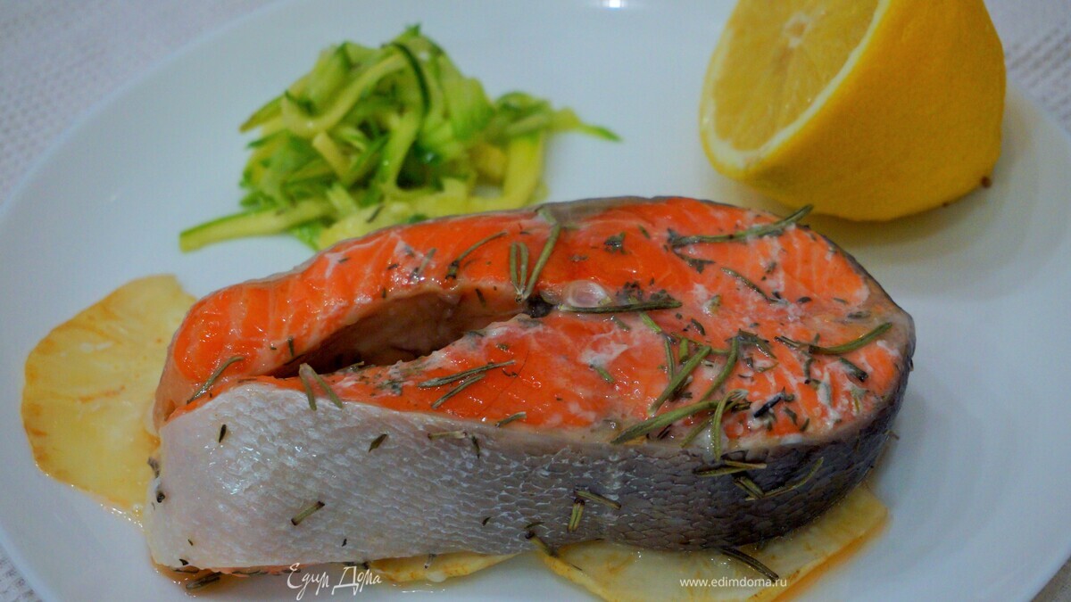 Свежие стейки посолить, сбрызнуть соком лимона с двух сторон; духовку включить на 225"С. - Шаг 1