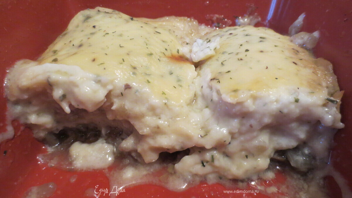 Треска с грибами под соусом Бешамель