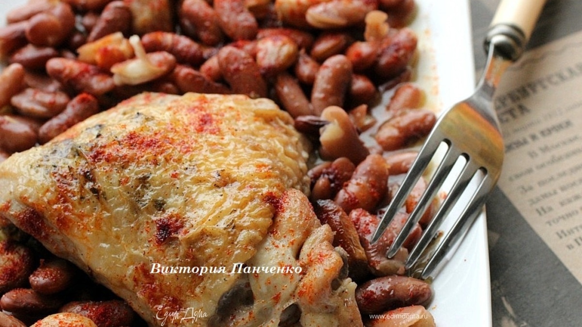 Влить два стакана воды, закрыть крышкой, довести до кипения, огонь уменьшить и готовить примерно 1 час 20 минут. Курица должна стать мягкой, а фасоль слегка развариться. Посыпать рагу паприкой и досолить по вкусу, если это необходимо. Подавать горячим... Приятного аппетита!!!